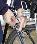 Loosen the brake cables before attempting to remove the wheel. Whilst you will experience little difficulty with a flat tyre, a fully inflated tyre will cause you a few problems. Practise this at home and ensure you know how to do it.