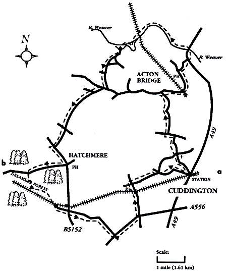 Route: Cuddington - Acton Bridge - River Weaver - Hatch Mere - Delamere Forest - Oakmere - Cuddington